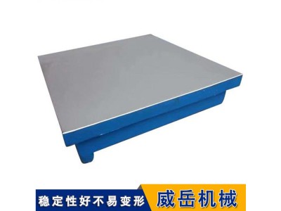 铸铁试验平台是划线、测量、铆焊、工装工艺不可以缺少的工作台,也可以做机械试验平台等等。在铸铁试验平台的生产设计上采用箱体式、筋板式或其他结构型式。在铸铁试验平台的相对两侧面上,应有安装手柄或吊装位置的设置、螺纹孔或圆柱孔。铸铁试验平台经检定符合标准要求后,应附有产品合格证;产品合格证上应有本标准的标准号和产品序号。从铸铁试验平台整个检验过程中来看,平板本身为测量基面,其放置应稳定;用自准直仪检定时,仪器与平板不在同一刚体上.仪器支架牢固性尤为重要。同上所讲,并不难看出来,不放过任何一个细微的小细节,同时我们是给客户运输前,都会准备相关的资质,如安装说明、使用说明、后期维护保养说明书,这也是我们威岳的一个特色。以保证使用客户可以更加方便的了解到产品的技术性问题。