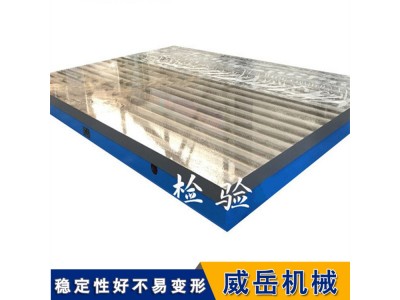 铸铁试验平台的用途,具体适用于用于机械、发动机的动力实验,设备调试,具有较好的平面稳定性和韧性,表面带有T型槽,可以用来固定实验设备;同时适用于各种产品的检验工作,铸铁试验平台用于检查零件的尺寸精度或行为偏差,并作划线试验平台在机械制造中也是不可缺少的基本工具。
